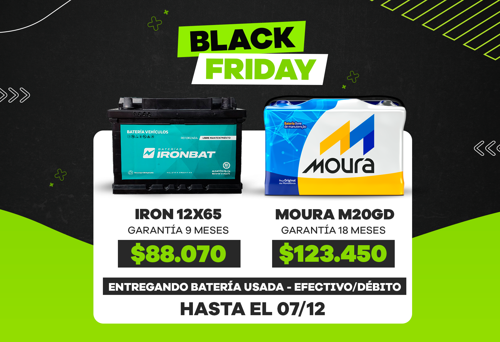 Todo lo que tu auto necesita para arrancar: baterías para autos de marcas líderes como Ithurbide, Moura e Ironbat, con instalación a domicilio en Córdoba sin costo. Además, realizamos control gratuito del sistema eléctrico y ofrecemos garantía.
